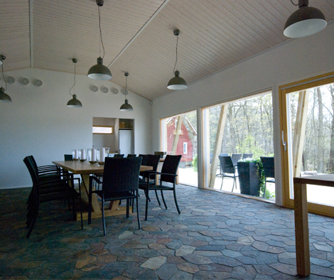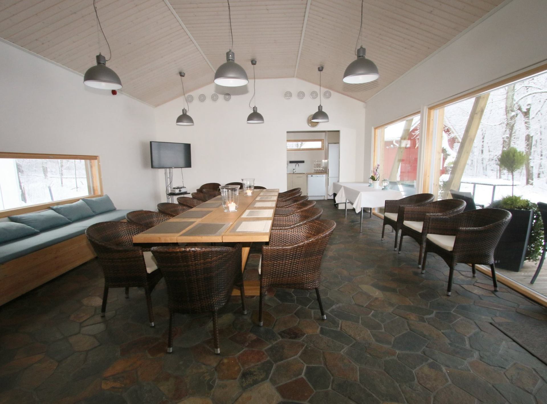 Our sauna is seated for thirty people, additionally a few more in the summer for sure.