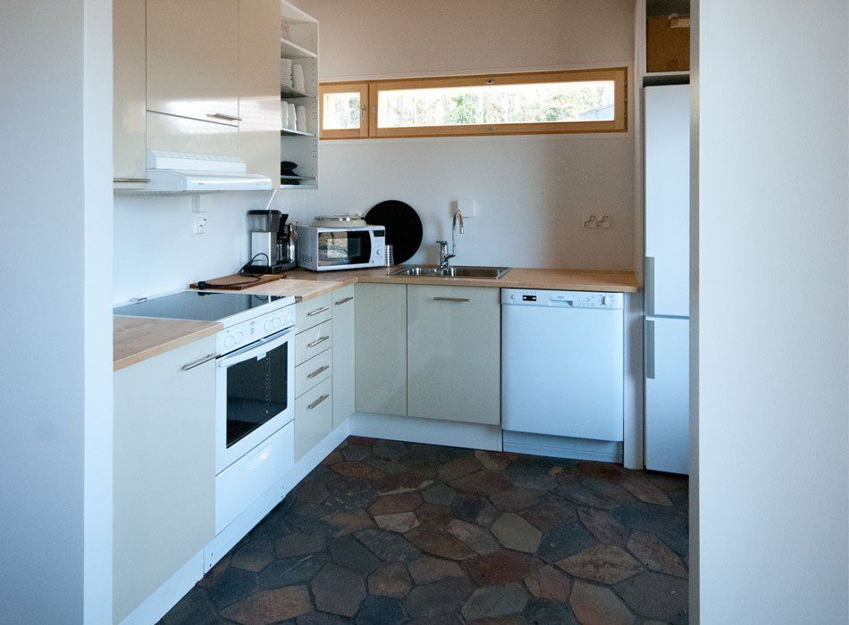 Saunan yhteydessä on lämmitetty ja valaistu ulkoporeallas. Avovesiaikaan voit pulahtaa mereen pitkältä laituriltamme.